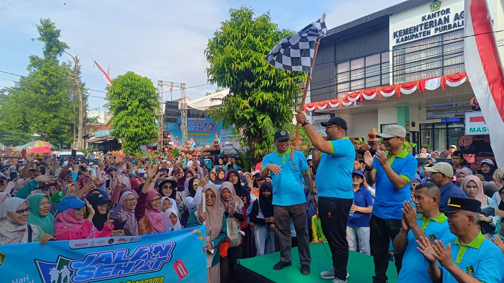 9763RGSFM, PURBALINGGA – Kantor Kementerian Agama (Kemenag) Kabupaten Purbalingga menggelar Jalan Sehat Kerukunan sebagai puncak rangkaian peringatan Hari Amal Bakti (HAB) ke-80 Kementerian Agama Republik Indonesia, Sabtu (10/1/2026) pagi. Kegiatan tersebut menjadi wujud komitmen Kemenag dalam memperkuat kerukunan umat beragama serta sinergi lintas elemen masyarakat.